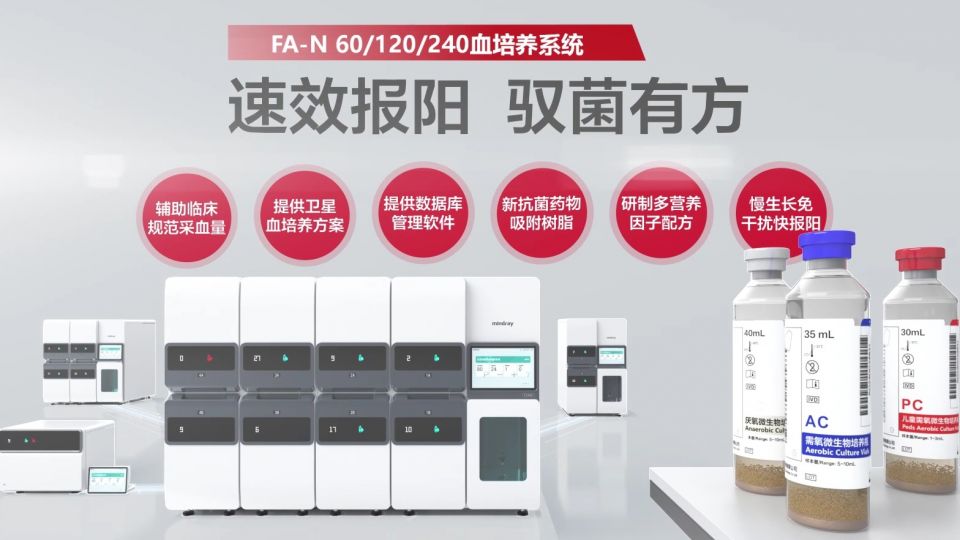 邁瑞FA-N系列全新上市:速效報(bào)陽(yáng),馭菌有方。血培養(yǎng)瓶與頂尖實(shí)驗(yàn)室合作,優(yōu)化血培養(yǎng)流程效率。